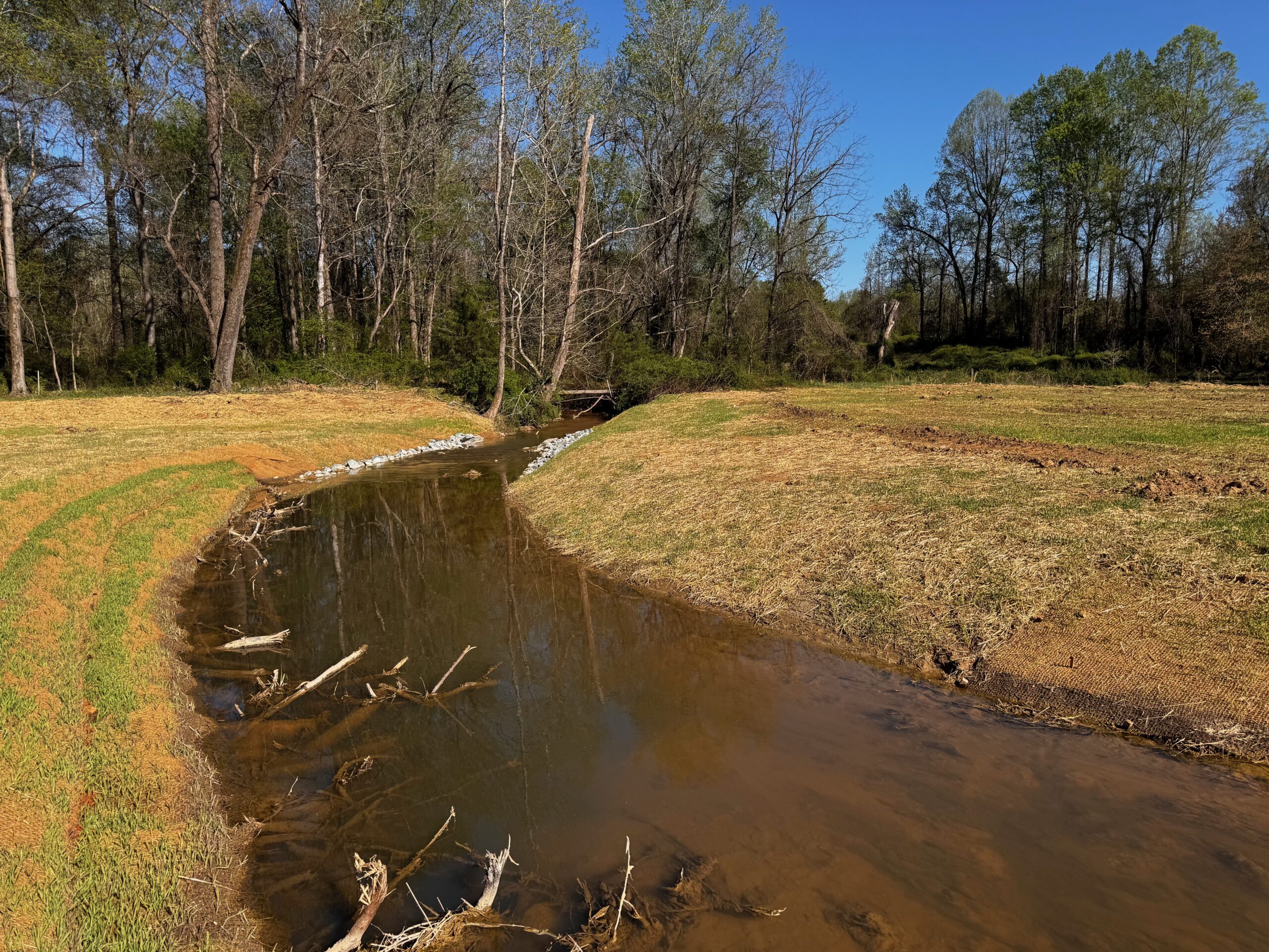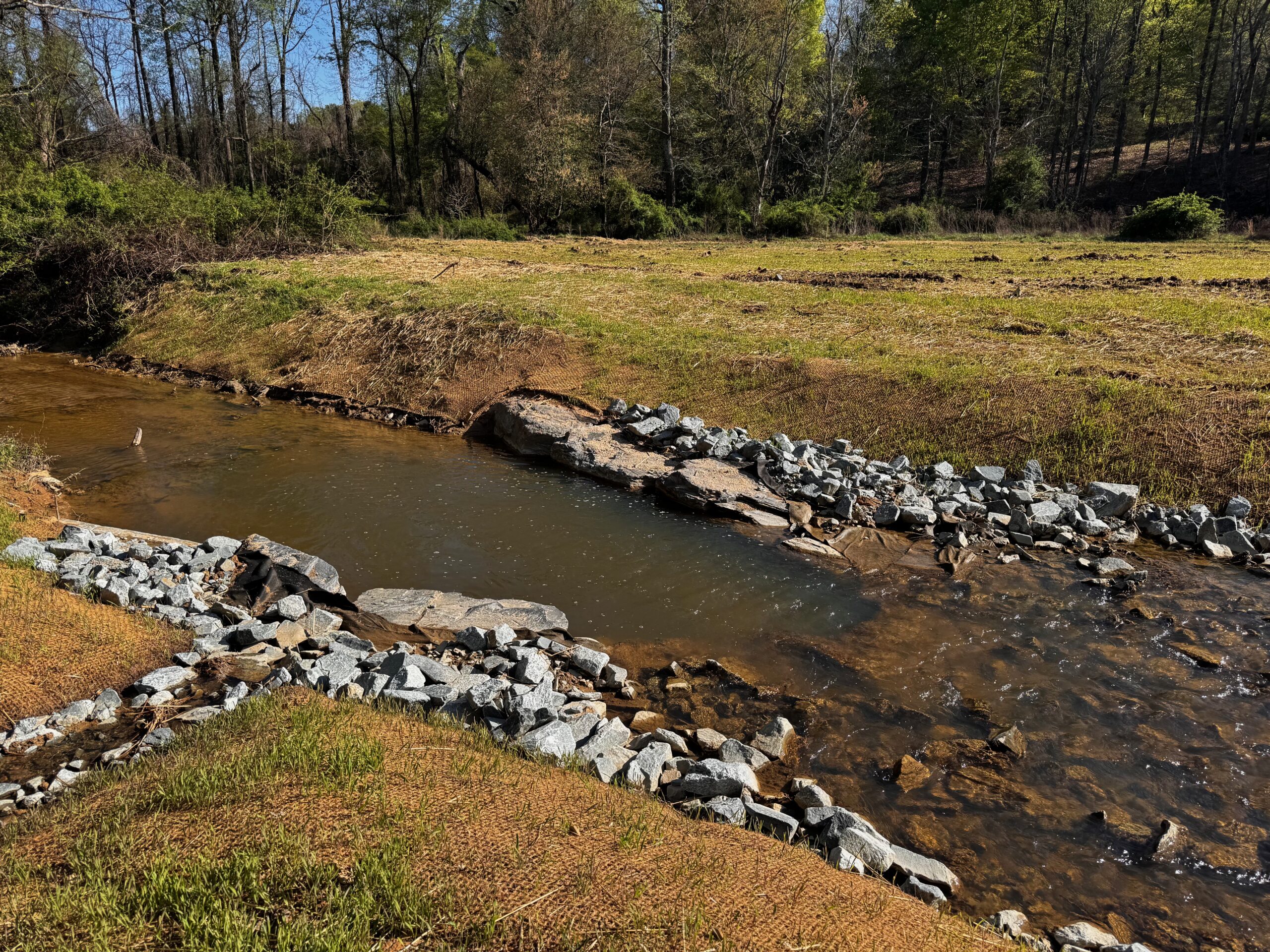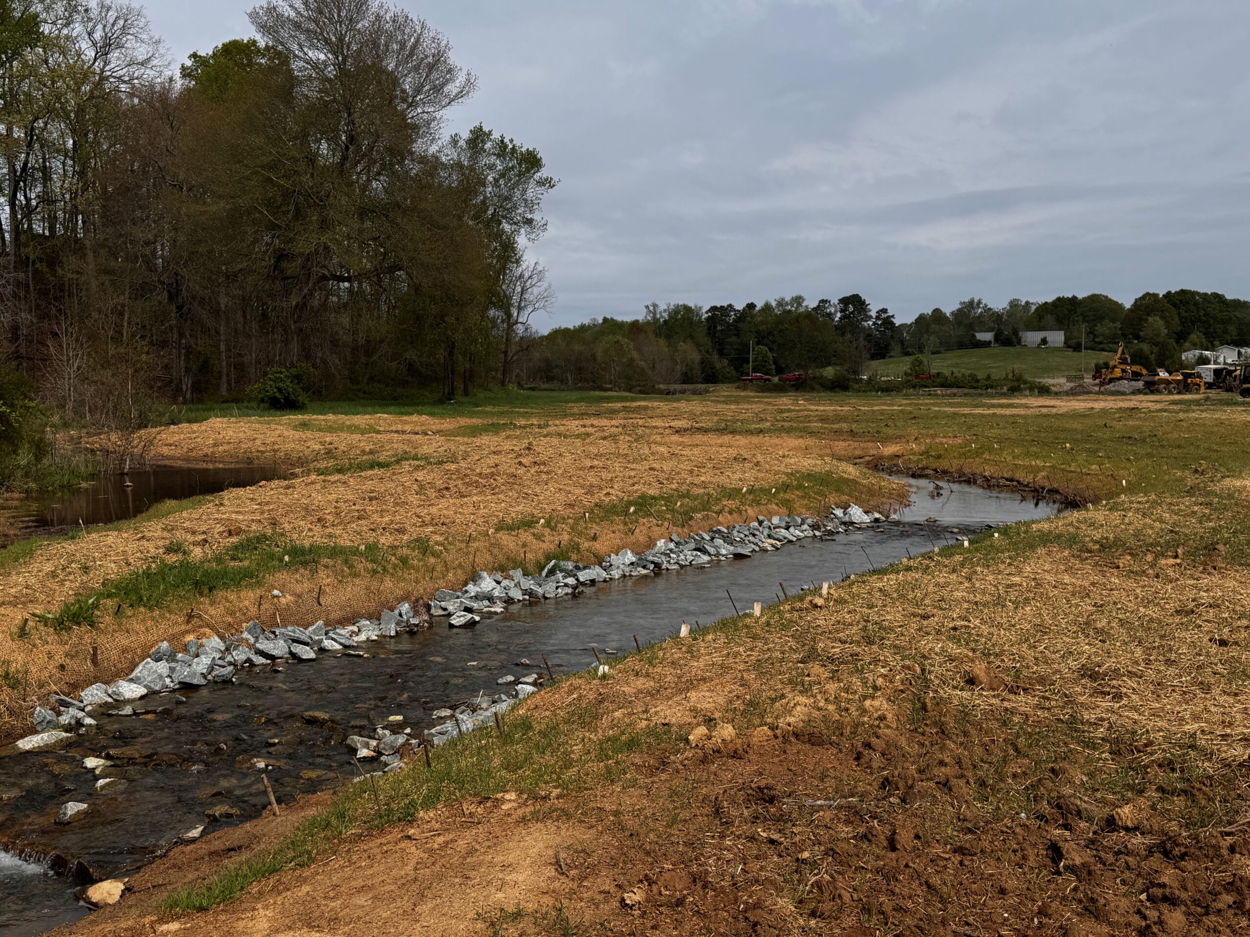 The Three Creeks Mitigation Bank is in Davidson County, approximately four miles south of Winston-Salem near the community of Midway and within the Yadkin River Basin. V2 has been working with the wonderful landowner family to implement this exciting project. Our mutual goal is to ensure that the farm stays within the family while allowing them to successfully continue raising cattle. Because the farm has been home to cattle for so long, the stream channels and wetlands in the project area have been impacted by decades of livestock and agricultural development. This project aims to protect 41.2 acres under a perpetual conservation easement that includes the restoration and enhancement of over 9,500 linear feet of stream across five stream channels. The project will also restore and enhance 6.4 acres of riparian wetlands in the Abbotts Creek watershed.
